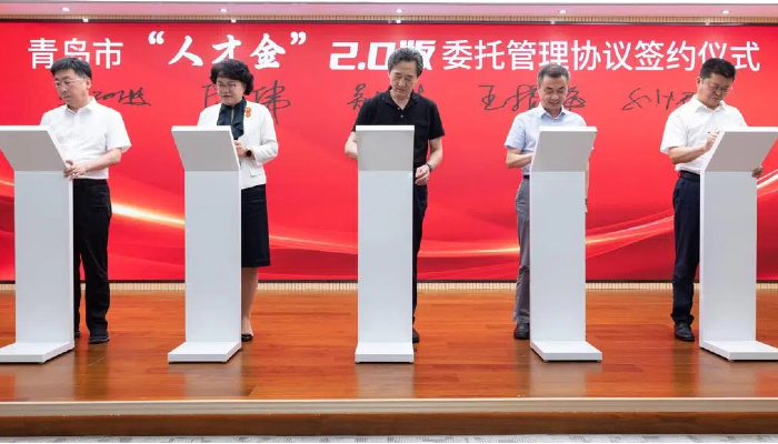 市委组织部、市财政局、市科技局和bv1946伟德官网集团、人才发展集团共同签订了青岛市“人才金”2.0版委托管理协议。